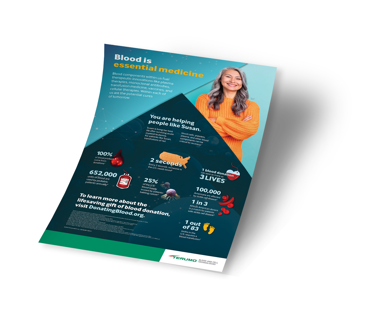 - 25% of the U.S. blood supply is used by patients battling cancer.3